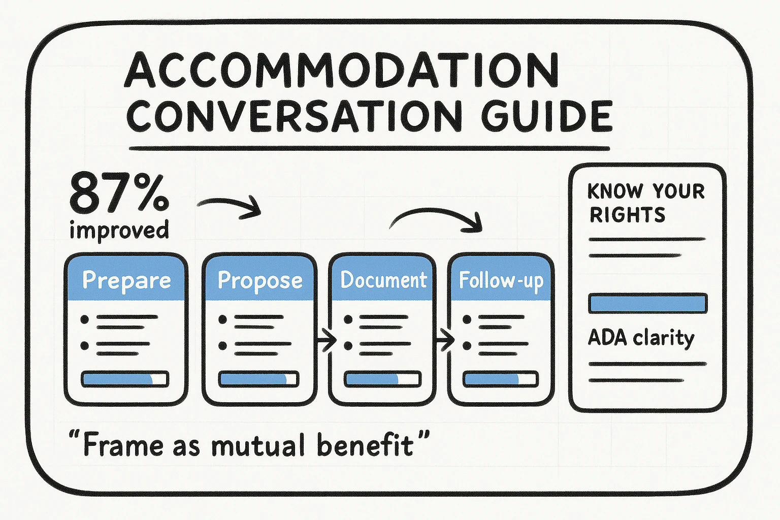 While legal avenues exist, the first step is often open communication. Frame requests in terms of productivity and mutual benefit. If initial conversations are difficult, consider involving HR or a disability advocacy service like the Job Accommodation Network (askjan.org). Document all communications.
