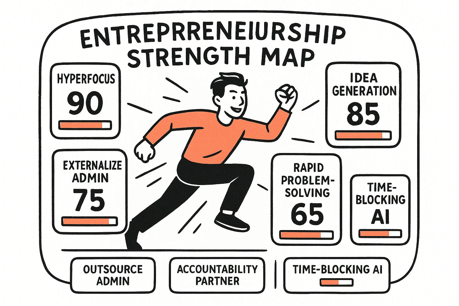 Absolutely. Many ADHD traits—creativity, resilience, ability to hyperfocus on passion, and comfort with risk—are highly beneficial for entrepreneurship. The key is to build a business structure that supports your executive functions, perhaps through outsourcing, automated systems, and strong accountability partners.