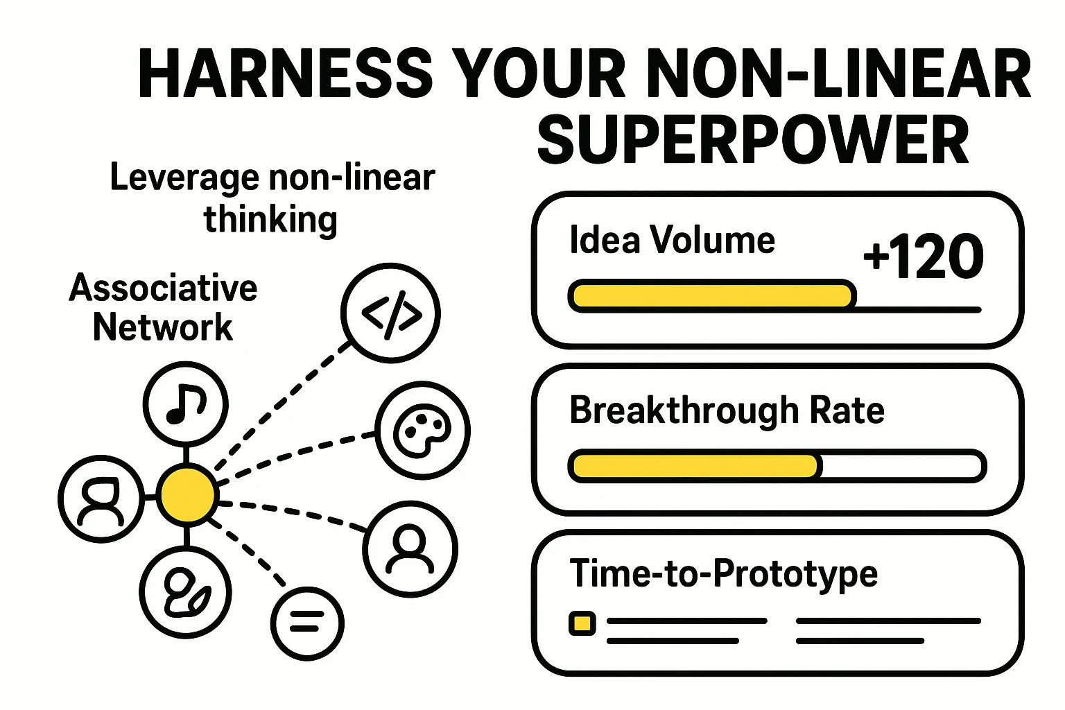 A: Absolutely. Fields that highly value innovation, problem-solving, and creative thinking are excellent fits. This includes entrepreneurship, research and development, design, the arts, technology, and any role requiring 'out-of-the-box' thinking or rapid ideation (Scientific American, HealthyPlace). Understanding and leveraging your non-linear thinking can be a major career asset.